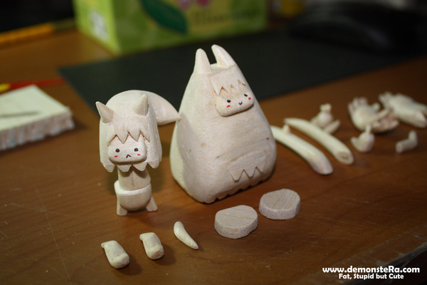 在今年年初,決定把這兩個小傢伙變成木頭(誤)!,因為我自己本身除了愛畫圖外,也很喜歡作些小玩意兒,這次就輪到大毛與小惡魔犧牲了(笑)。不過製作過程真的蠻有趣的也很開心,看著他們立體化,想著平時畫圖時畫不到的細節,很喜歡那種一步步讓他們更活生生的活躍在大家的眼前的那種感覺~